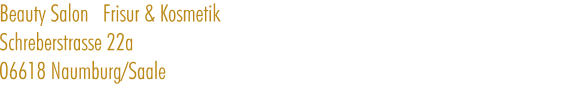 In der Zwischenzeit erreichen Sie uns wie immer telefonisch unter 03445 / 77 17 97 und per Telefax unter 03445 / 71 14 86 . Natürlich freuen wir uns auch über eine E-Mail von Ihnen, die Sie an diese Adresse senden können: info@beautysalon-koenig.de